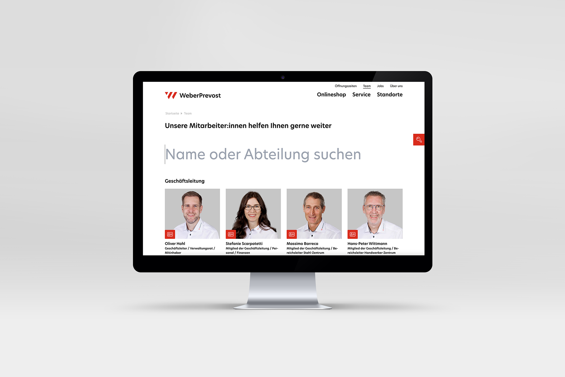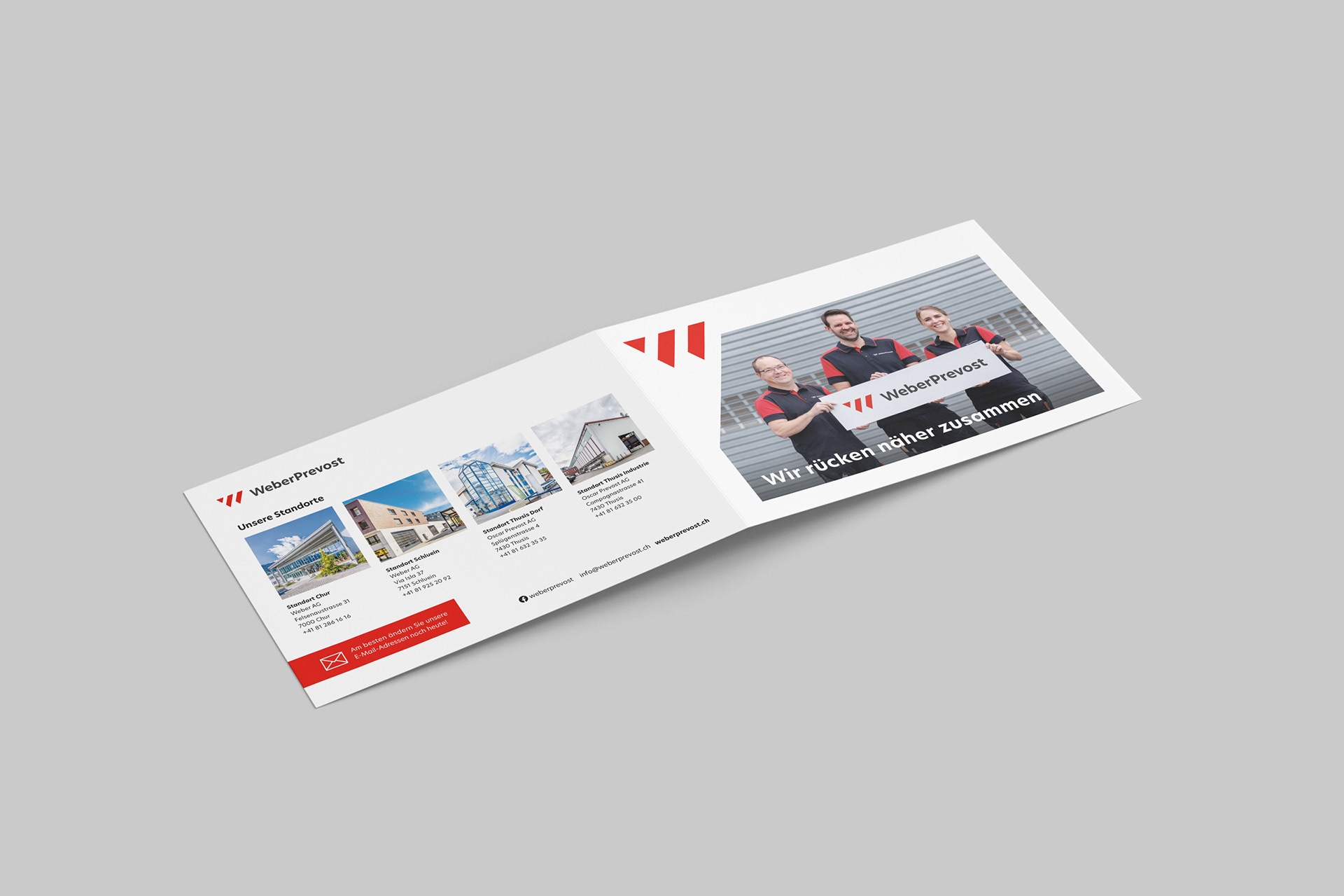 Ein grosses W als gemeinsames Wahrzeichen. Seit Januar 2023 treten die «Weber AG» und die «Oscar Prevost AG» zusammen als «WeberPrevost» auf. Unter der neuen Marke stärken sie ihren Auftritt als Zentrum für Handwerk, Bau und Sicherheit. Nebst der Entwicklung der Corporate Identity durfte ich sämtliche Firmenunterlagen, die Beschriftungen der drei Standorte und der Fahrzeugflotte sowie die neue Website konzipieren und umsetzen. Entstanden ist ein prägnanter Neuauftritt.